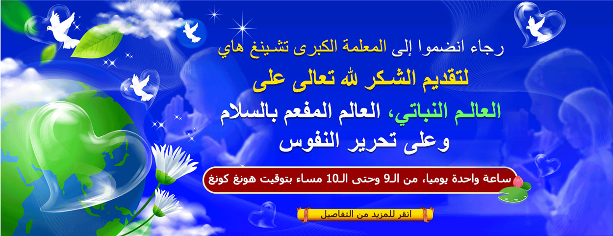 الحب ليس مجرد كلمة تنطق بها الشفاه، بل أحاسيس ومشاعر داخلية، ويترجم على شكل أفعال. نتيجة حبنا للحيوانات، سنصبح خضريين. نتيجة حبنا للأرض، سنحمي البيئة. نتيجة حبنا للعالم، سننقذ الكوكب. - المعلمة السامية تشينغ هاي (فيغان)