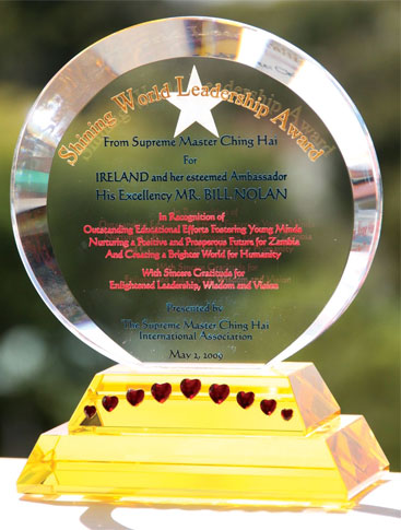 In recognition of Her selfless contributions, government representatives and organizations worldwide have presented Supreme Master Ching Hai with prestigious awards on numerous occasions. Among these are the Gusi Peace Prize (2006), the World Spiritual Leadership Award (1994), and the World Citizen Humanitarian Award (1994).